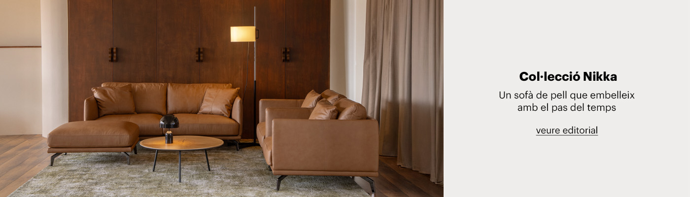 Nikka és una col·lecció de disseny japonès composta per sofàs, butaca i puf, entapissats en pell d’anilina color whisky. Destaca per la seva suavitat, calidesa i textura natural. Amb línies minimalistes, costures artesanals i coixins extra inclosos, ofereix l’equilibri perfecte entre confort, elegància i durabilitat.