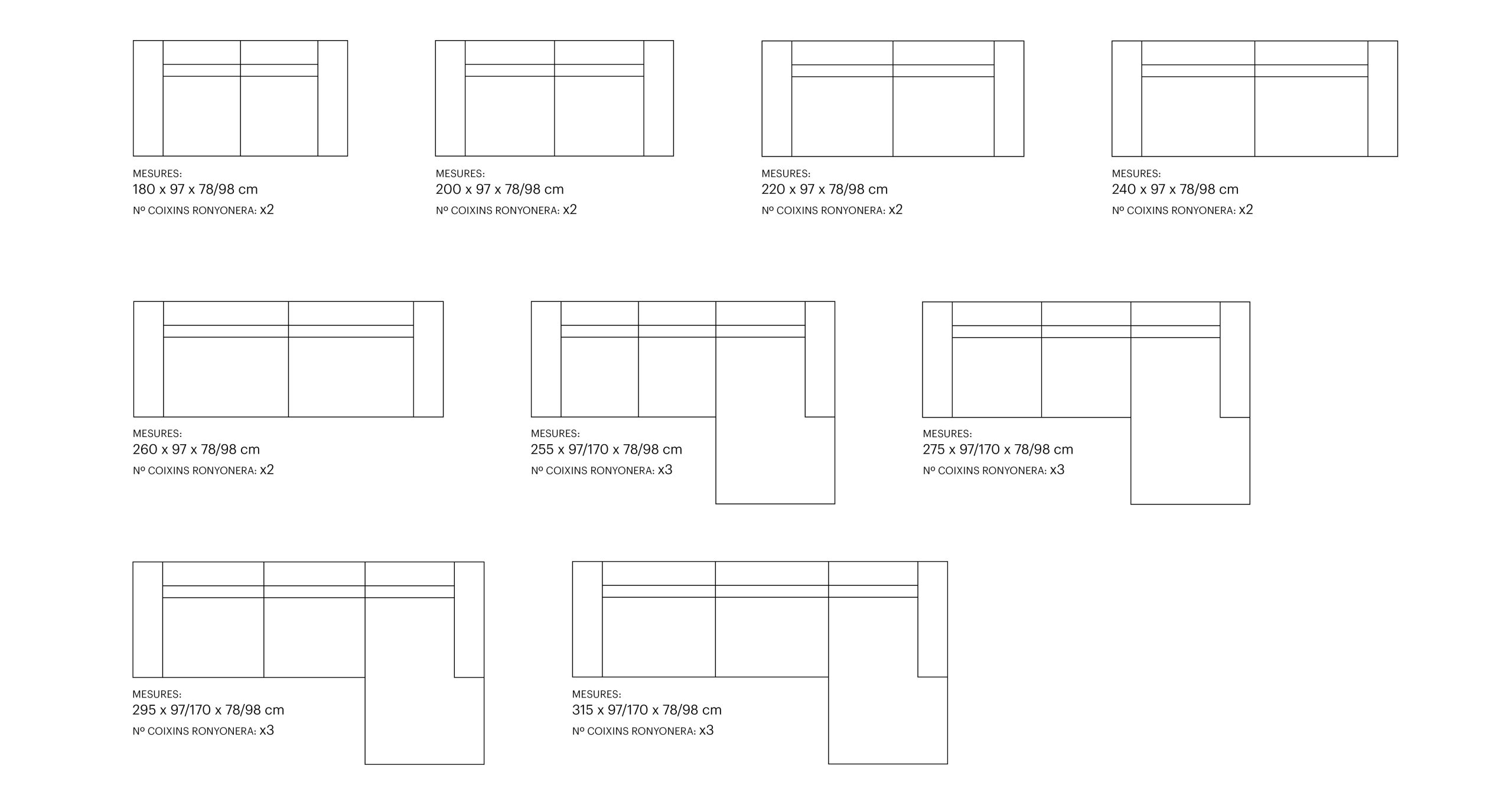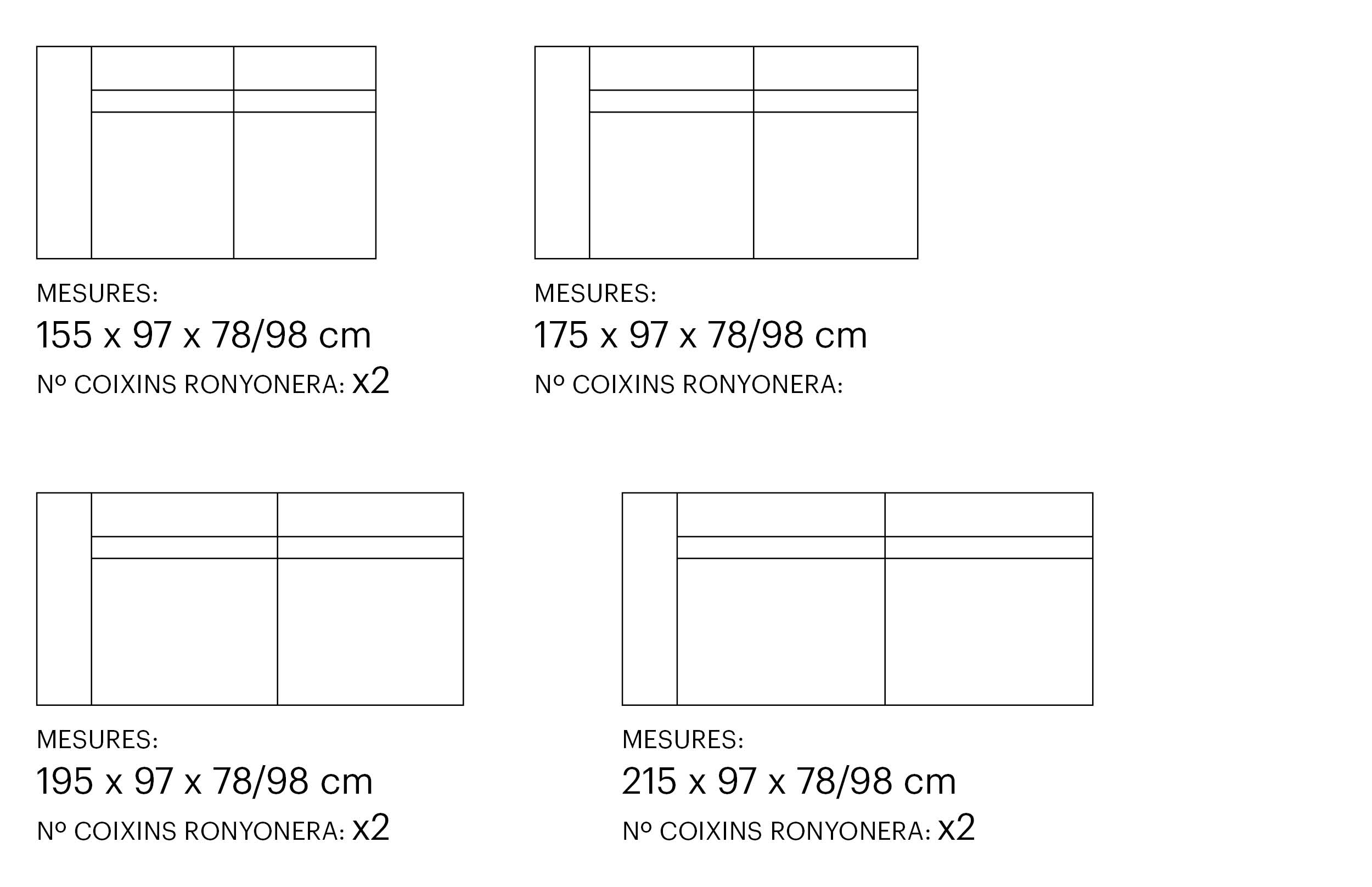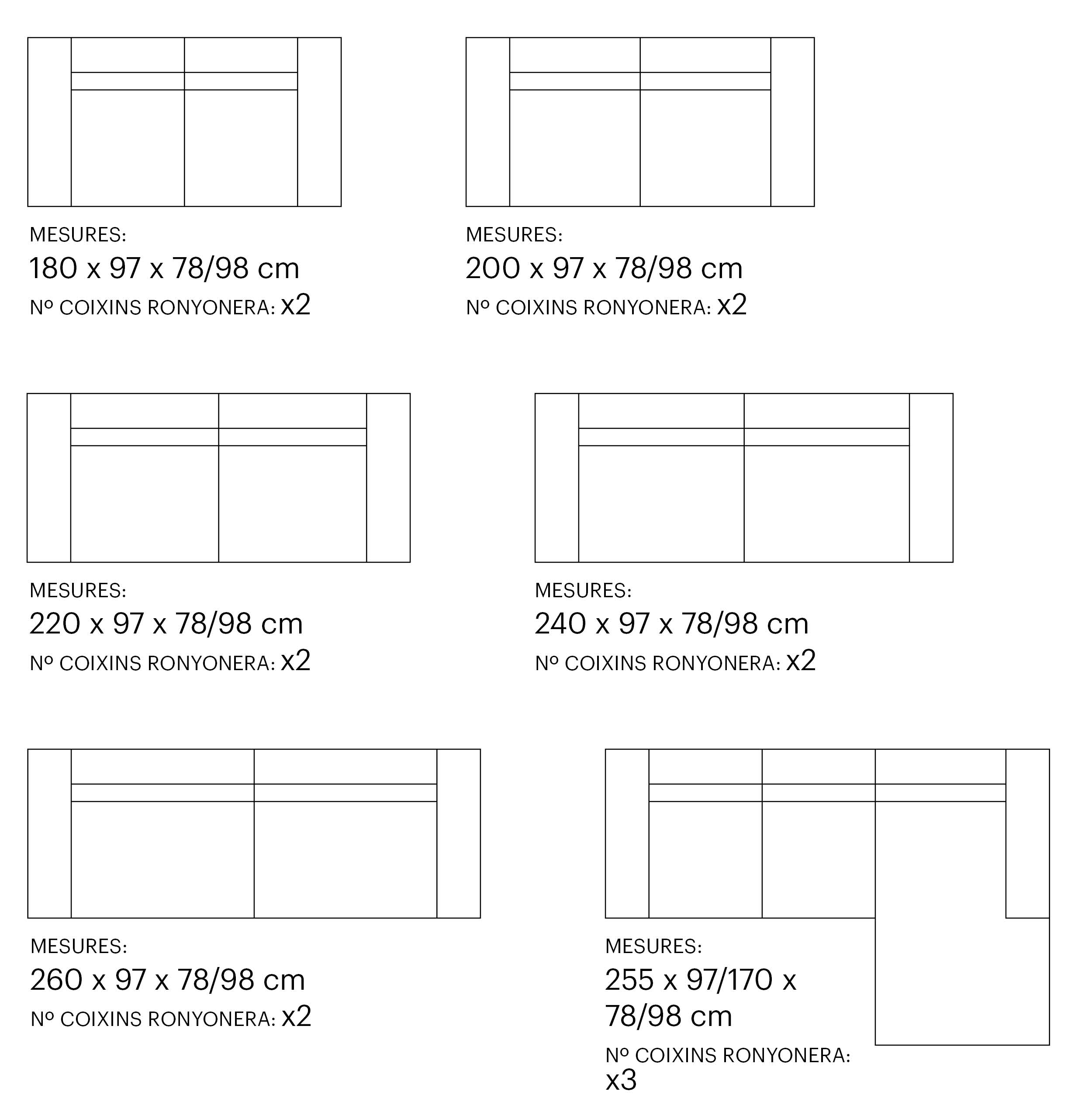 - Amb 1 coixí ronyonera a cada mòdul del sofà.
