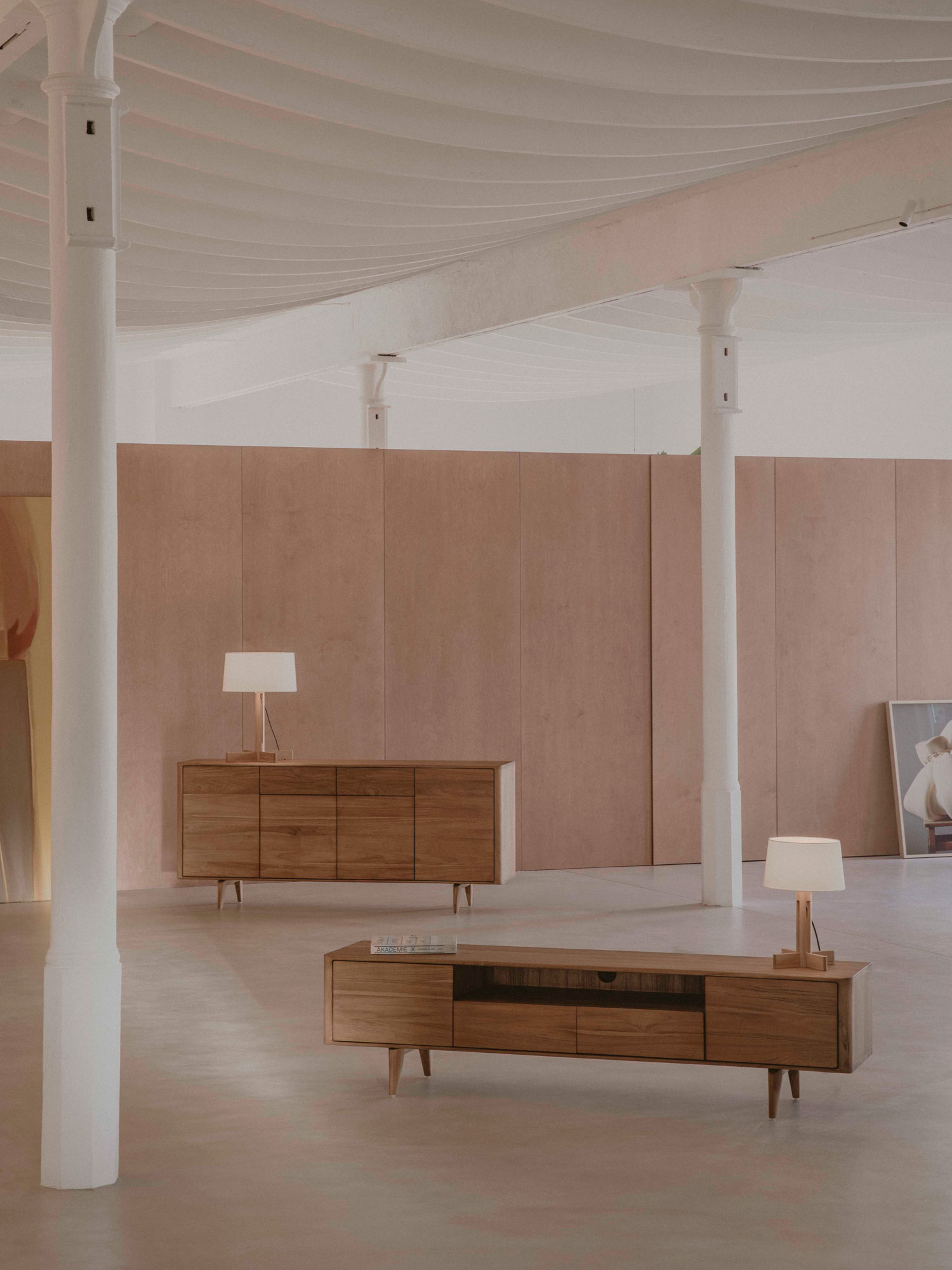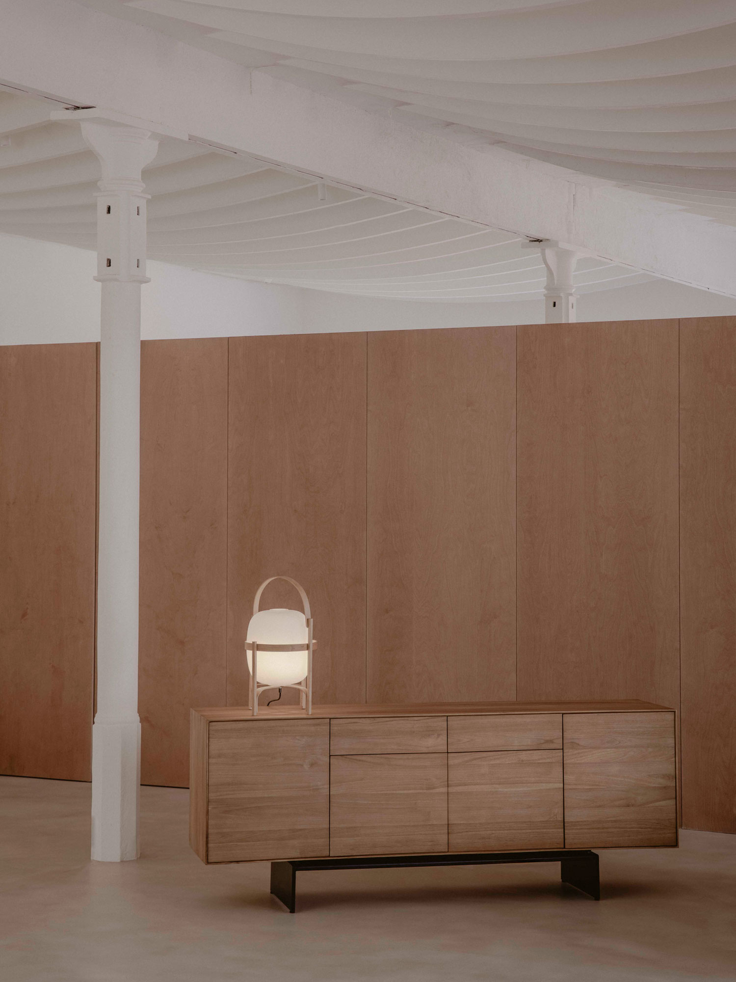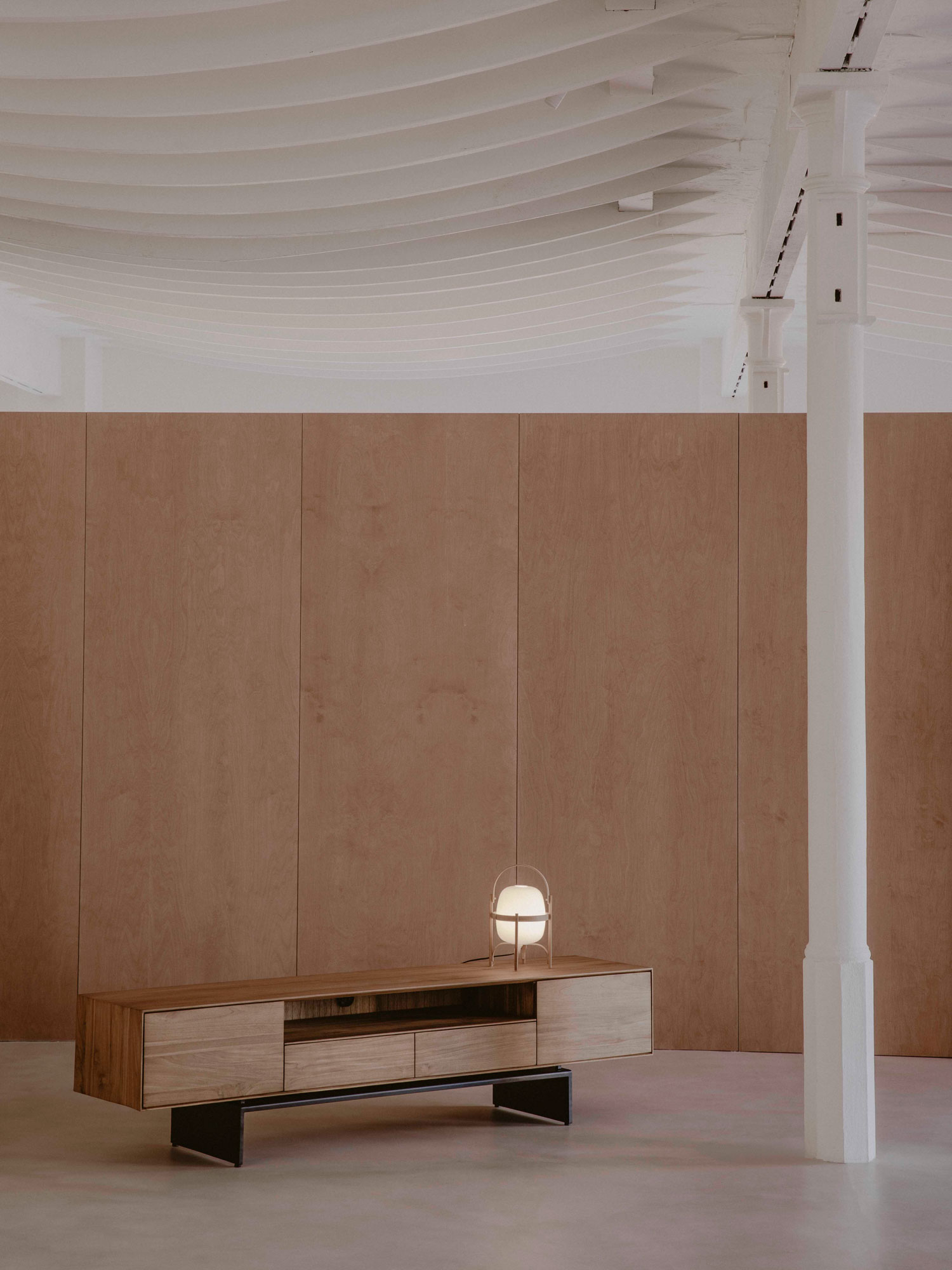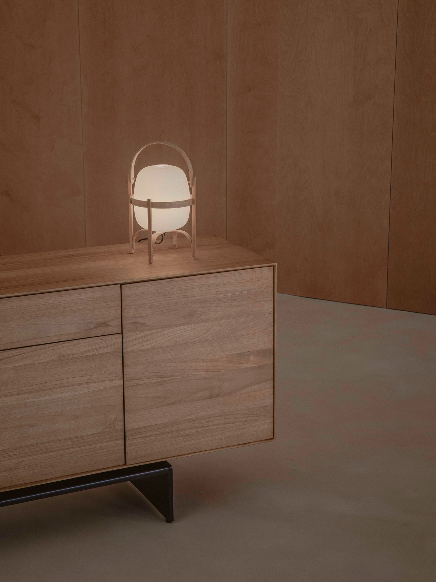 Aparador Teide de PLM Design y lámpara de sobremesa Cesta de Santa & Cole.