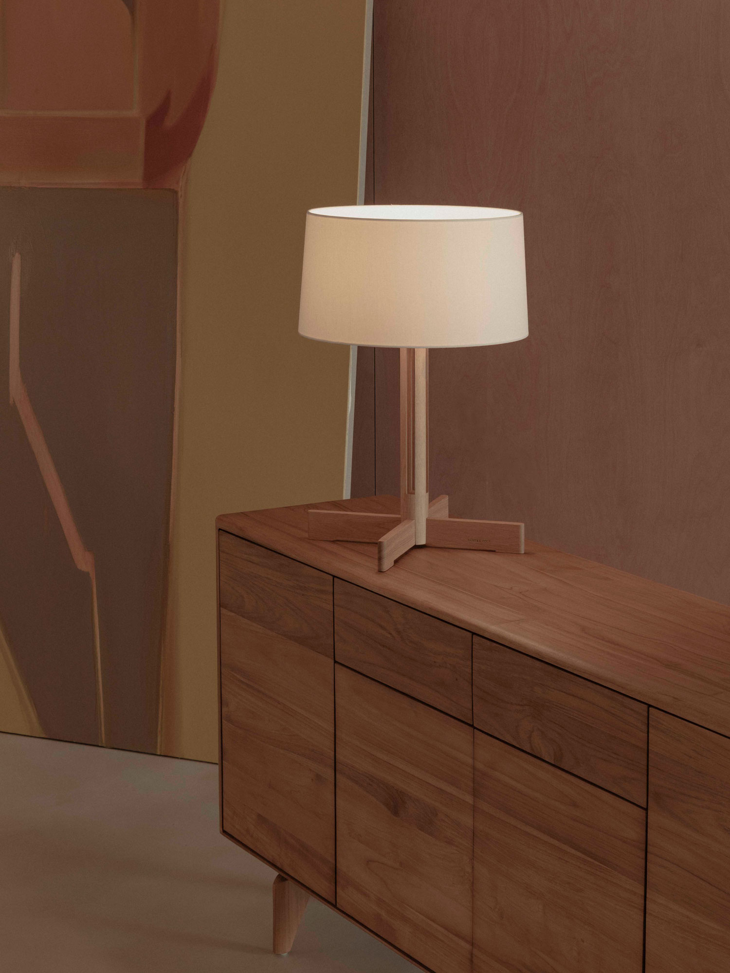 Aparador Etna de PLM Design y lámpara de sobremesa FAD de Santa & Cole.