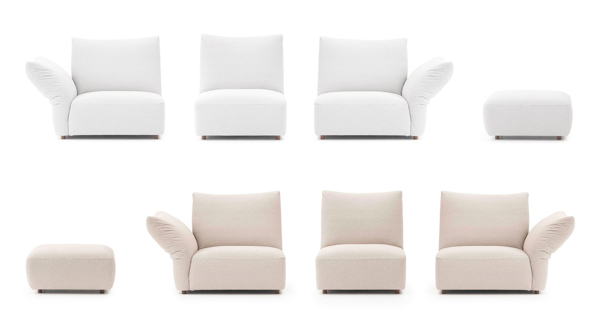 Su nombre en japonés significa nube, y basta una mirada para entender por qué. De formas redondeadas, su volumen generoso y envolvente junto con su tacto suave y mullido invitan a dejarse caer en él para disfrutar de su comodidad.