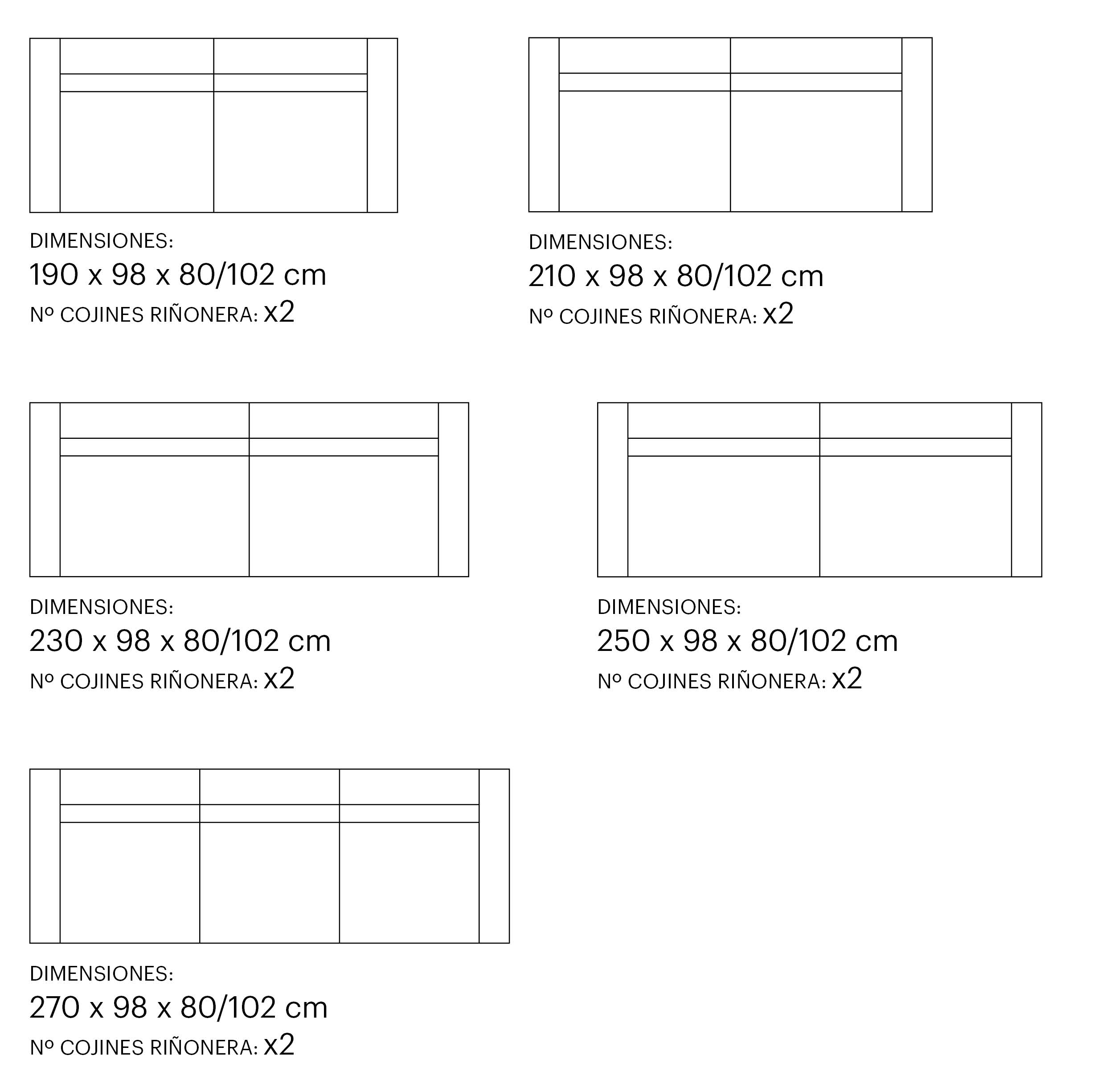 Sofá Dresde 270 x 98 x 80/102 cm tapizado Brema Niagara 158