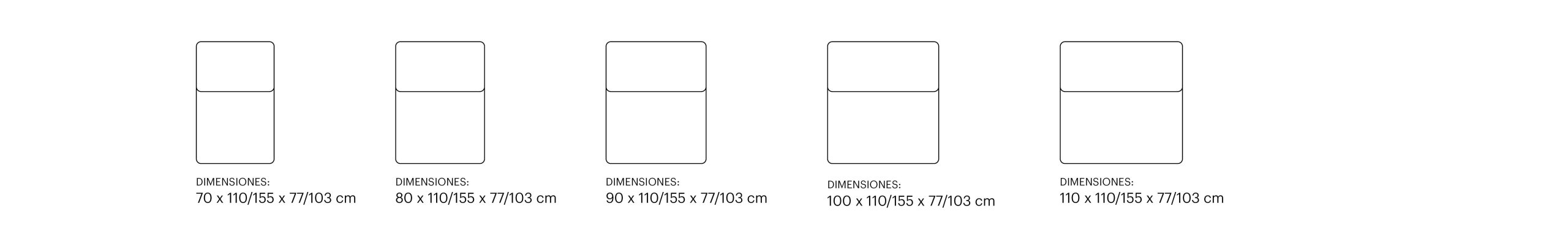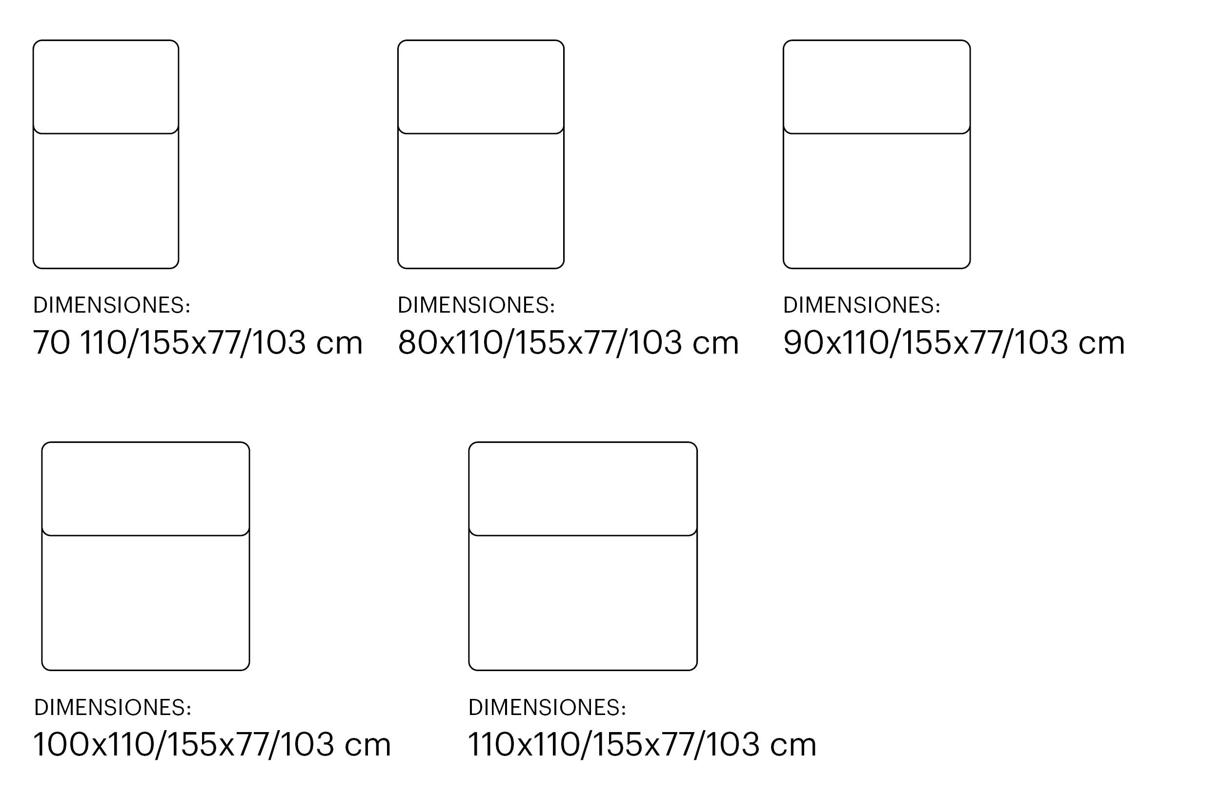 - Estructura de madera maciza con marco metálico recubierto de poliuretano de diferentes densidades.